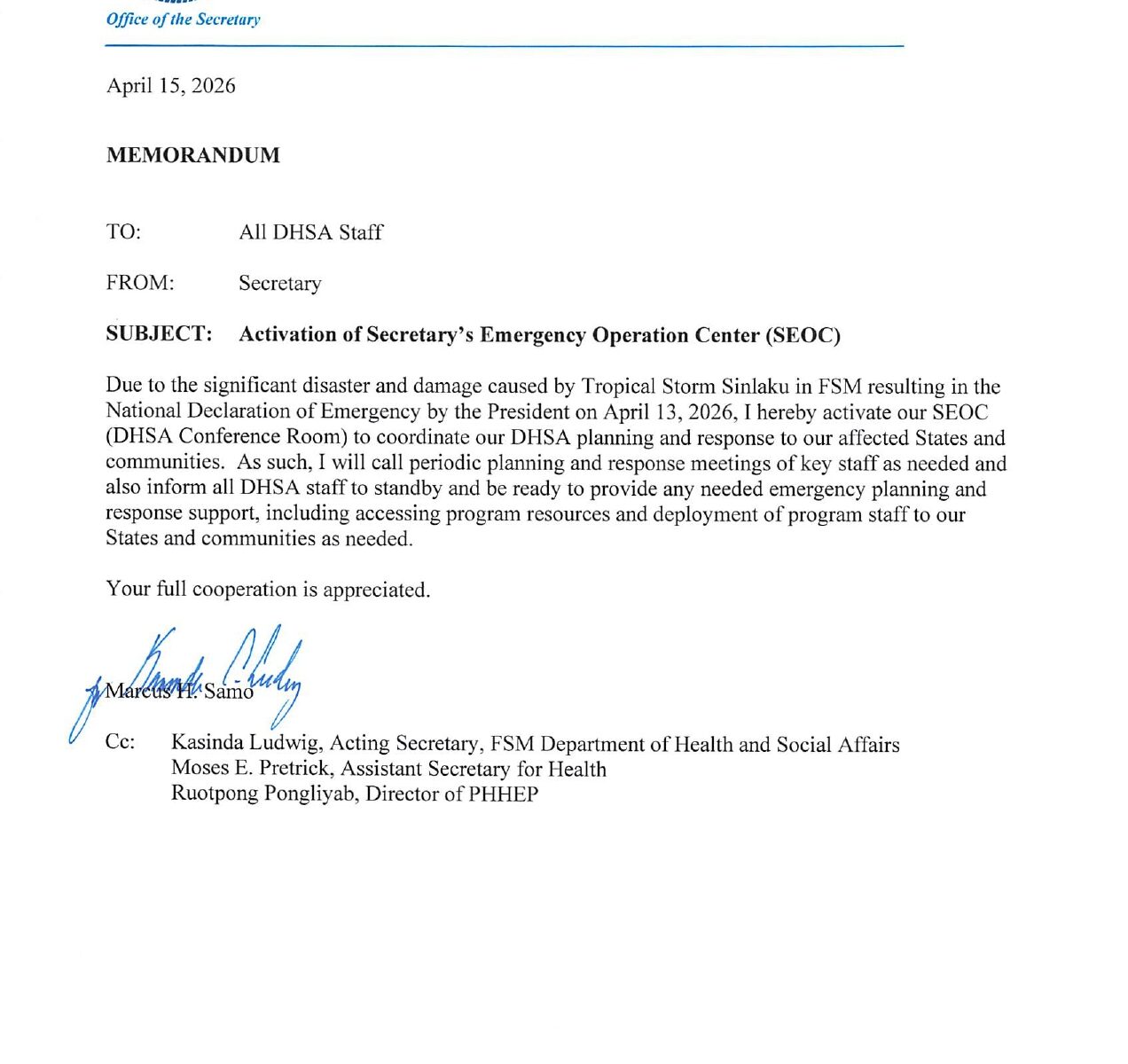 | Email: personnel@personnel.gov.fm | Email: health@fsmhealth.fm |