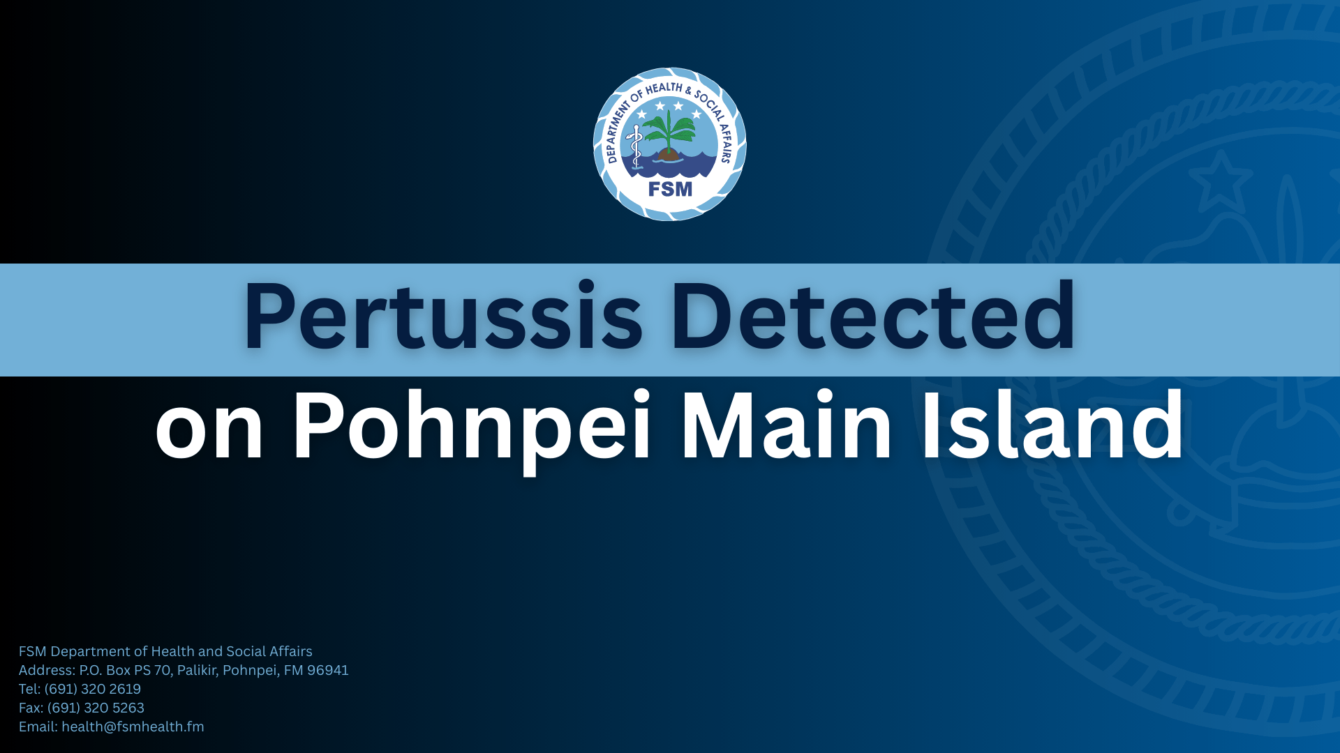 PALIKIR, Pohnpei—On February 18, 2026, the FSM Department of Health and Social Affairs (DHSA) received a report from Pohnpei State Department of Health and Social Services confirming nine pertussis cases detected on the island of Pohnpei.