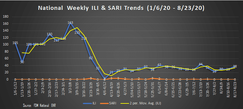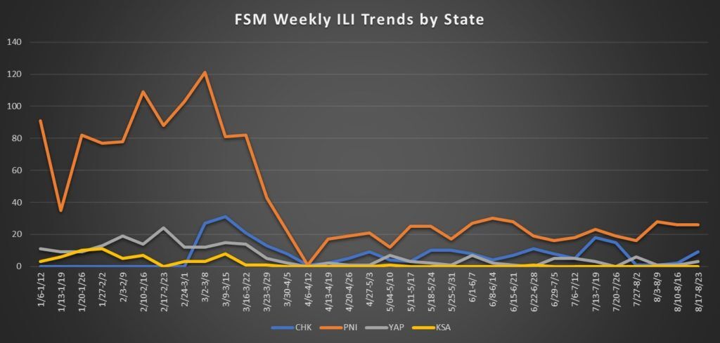 FSM utilizes the existing flu-surveillance system to monitor possible Covid-19 outbreak in the FSM. The Nationalized Electronic Health Record (EHR) was recently installed in all the Government Hospital in the FSM. Chuuk Hospital completed installation in March 2020. With the EHR, patients with these symptoms of fever, cough, runny nose, etc., can be identified and counted. Patients with these symptoms requiring admissions can also be identified and classified as SARI cases. (Syndrome- a group of symptoms which consistently occur together, or a condition characterized by a set of associated symptoms (i.e., fever, runny nose, cough, shortness of breath,etc)
